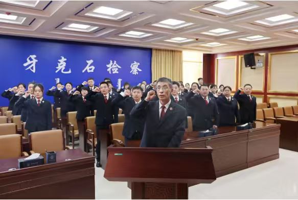 铭记誓言恪守初心,法治担当肩负使命。12月4日,牙克石市人民检察院在第十二个宪法日举行宪法宣誓仪式。宣誓仪式由该院党组书记、检察长柳阳毅主持并领誓,全体检察人员参加此次宣誓仪式。